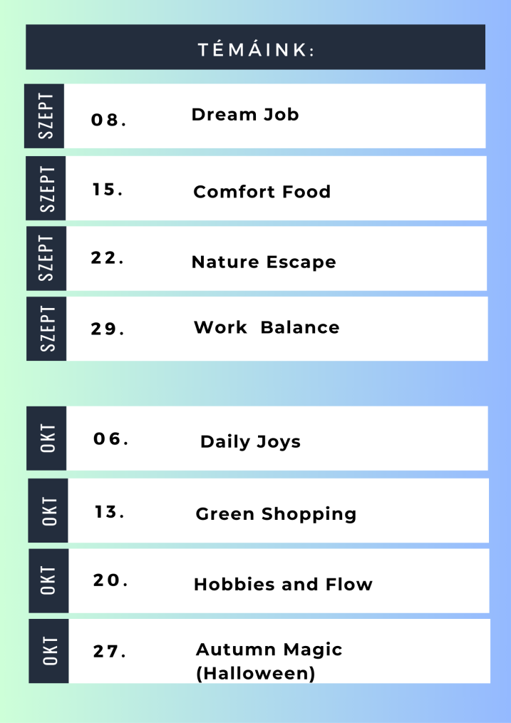 Minden kedden este 6-től 7-ig találkozunk online (max 10 fővel) hogy együtt tanuljunk, beszélgessünk.